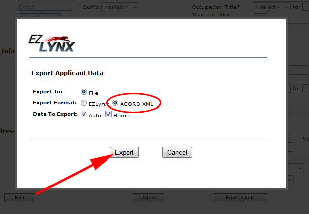choose to export the file in an ACORD XML format.