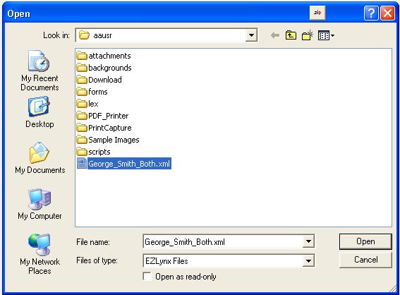 Once that is installed, use The Agency Advantage to complete either ACORD form 80 (Homeowner's Application) or ACORD 90 (Personal Auto Application) and print it, choosing the EZLynx printer.